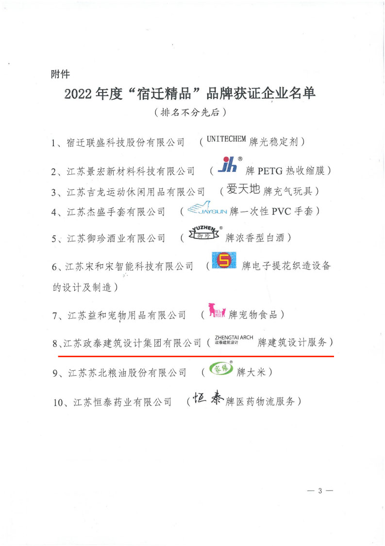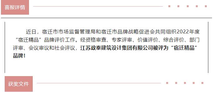喜報(bào)丨江蘇政泰建筑設(shè)計(jì)集團(tuán)榮獲“宿遷精品”品牌稱號(hào)